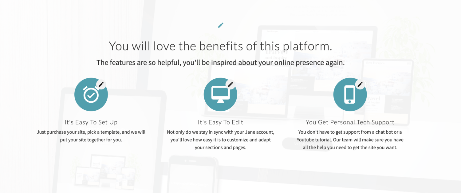 Icons can break up large sections of text and are simple ways to highlight the benefits of your service.